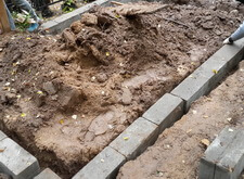 После этого приступили к базовым работам по установке бетонного цоколя. Работы были осложнены тем, что могила находится на склоне и имеет размеры большие, чем обычная могила. Цоколь сложен из бетонных блоков и армирован арматурой.